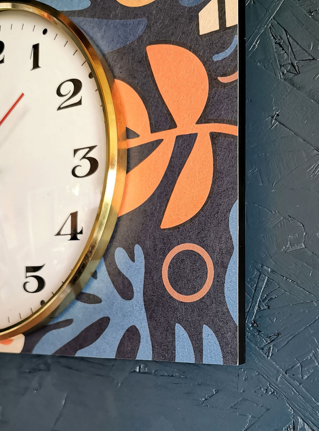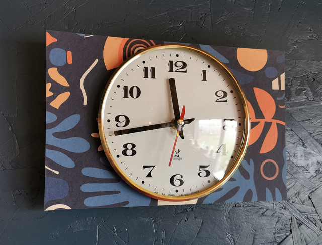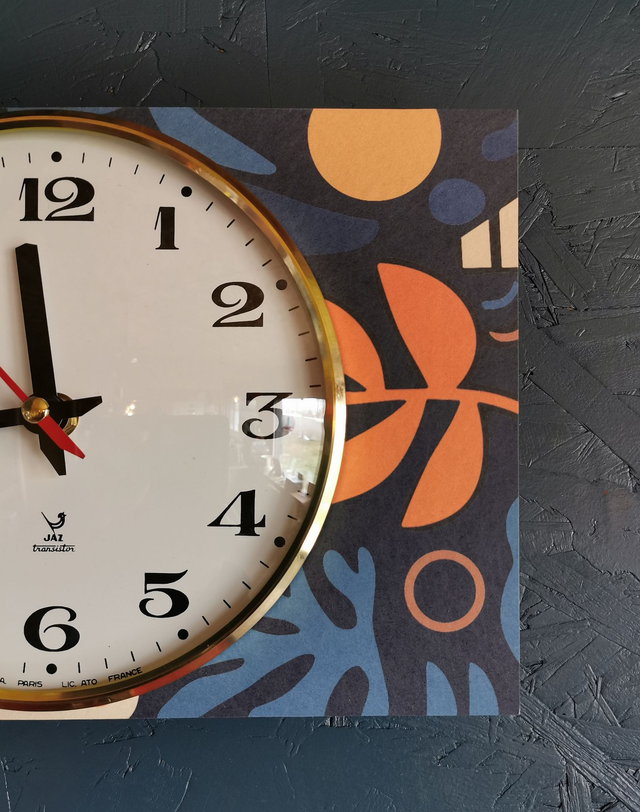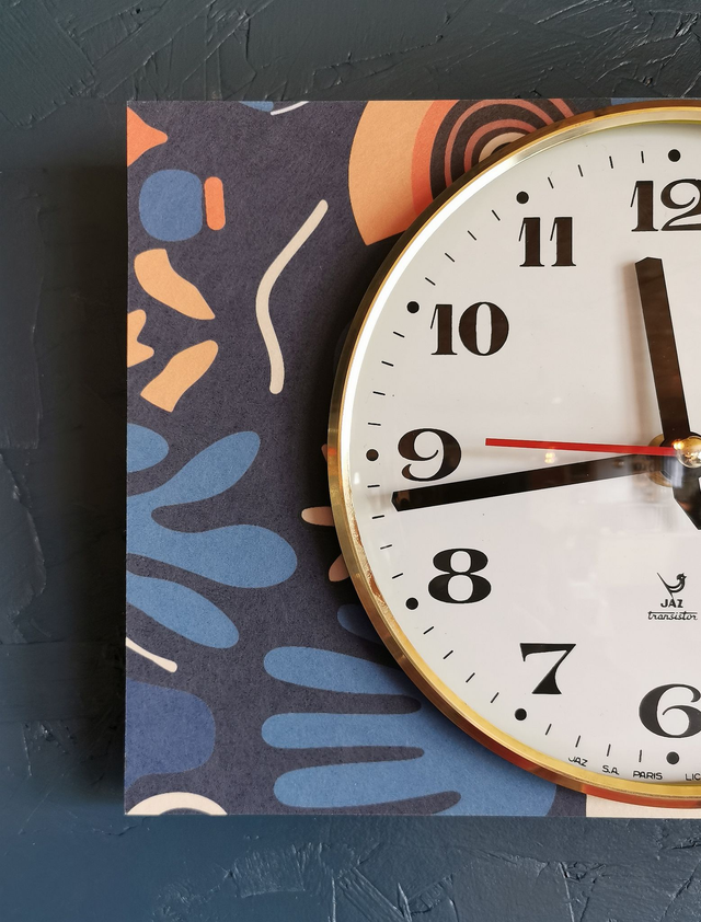 Horloge vintage pendule murale silencieuse rectangulaire "Jaz bleu orange"