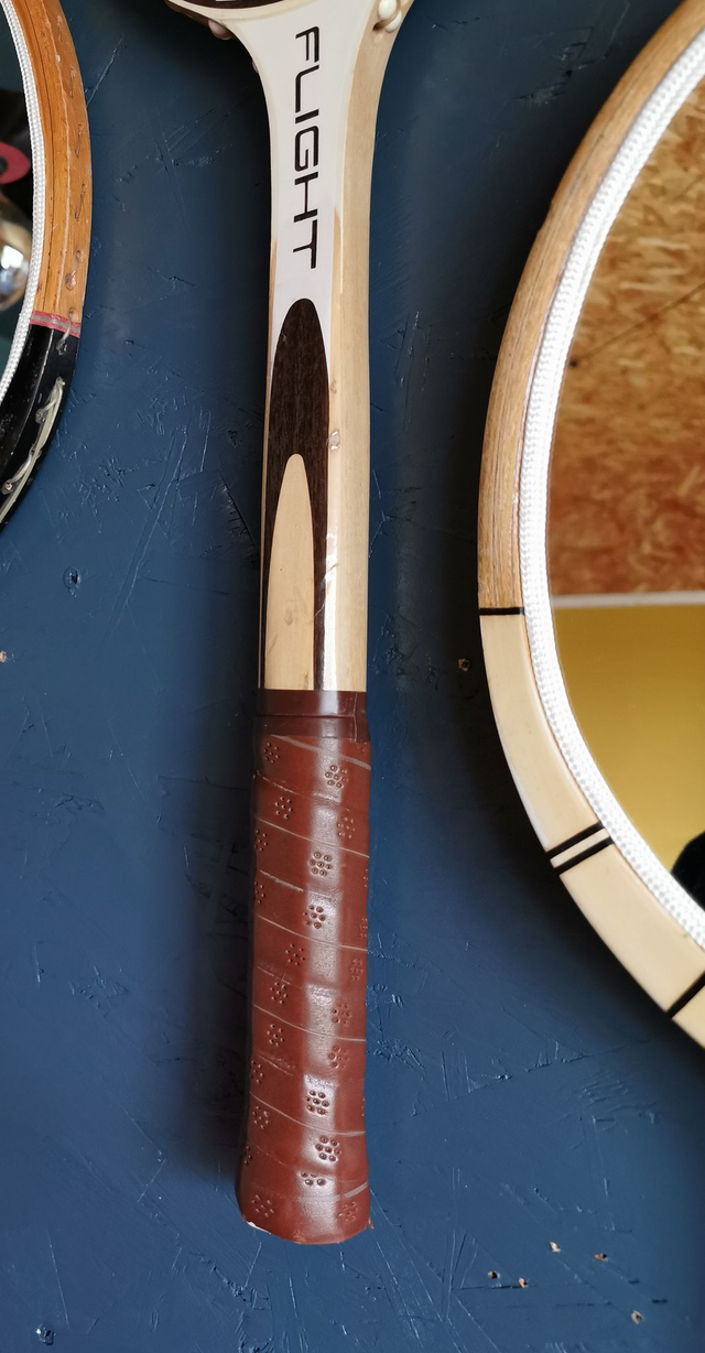 Miroir mural ovale bois raquette tennis vintage "Donnay flight"